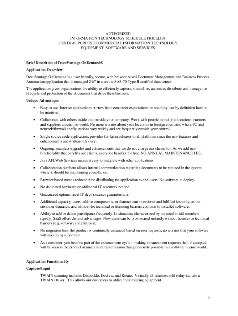 Get the free Brief Descrition of DocuVantage OnDemand Application ...