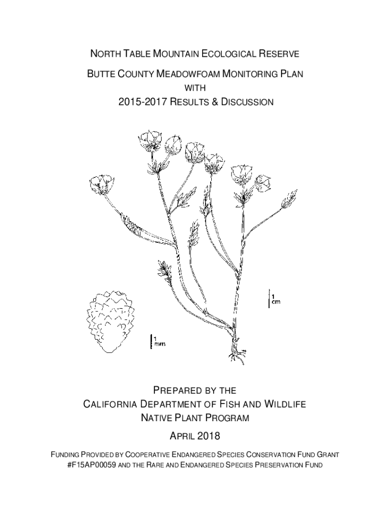 NORTH TABLE MOUNTAIN ECOLOGICAL RESERVE BUTTE COUNTY MEADOWFOAM MONITORING PLAN WITH20152017 RESULTS & DISCUSSION PREPARED BY THE CALIFORNIA DEPARTMENT OF FISH AND W WILDLIFE NATIVE PLANT PROGRAM