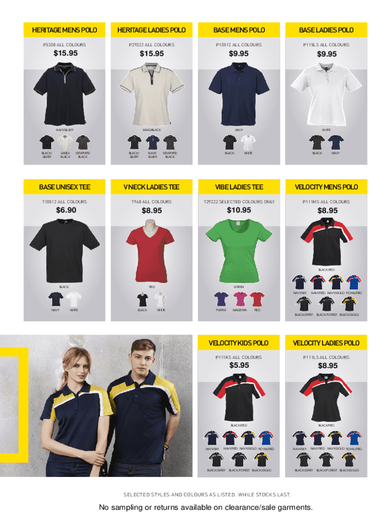 SELECTED STYLES AND Colors AS LISTED. WHILE