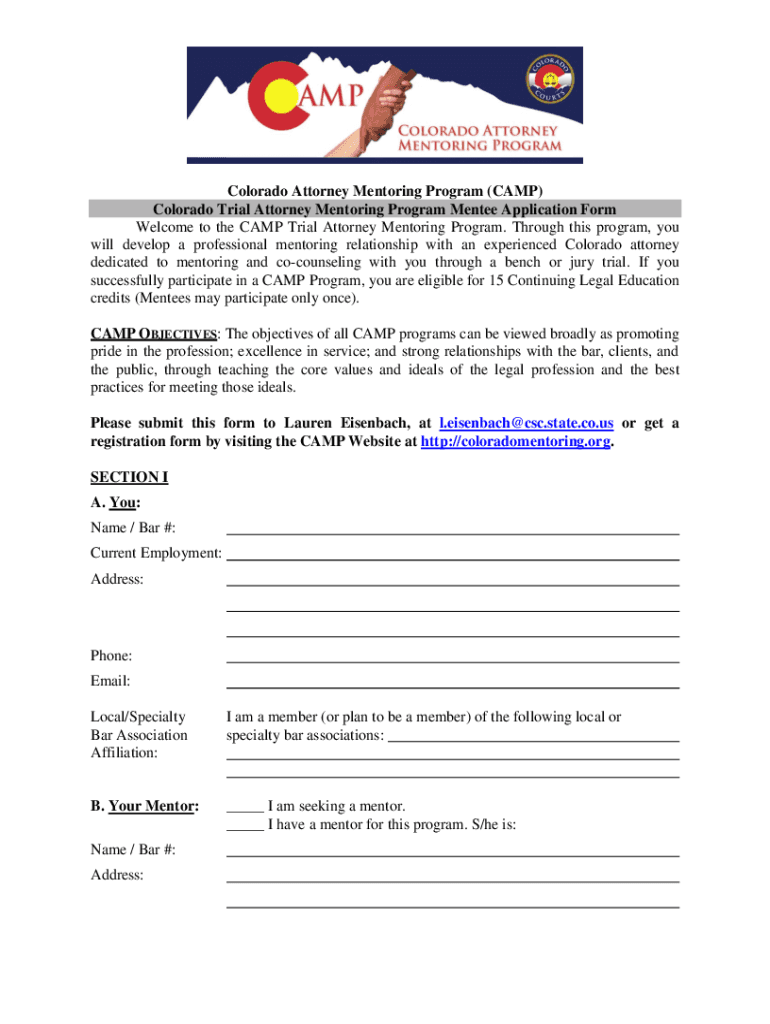 Colorado Trial Attorney Mentoring Program Mentee Application Form