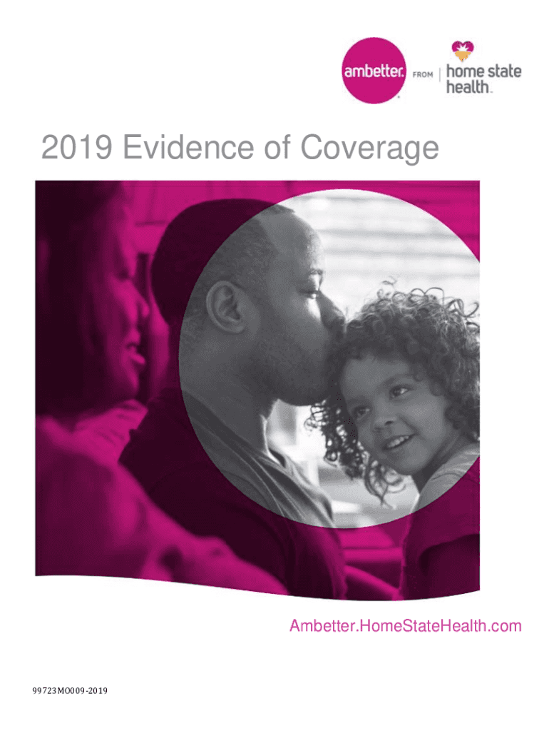 2019 Evidence of CoverageAmbetter. HomeStateHealth.com99723MO0092019Ambetter from Home State Health Individual EPO Health Benefit Plan Issued and Underwritten by Celtic Insurance Company Home Office: