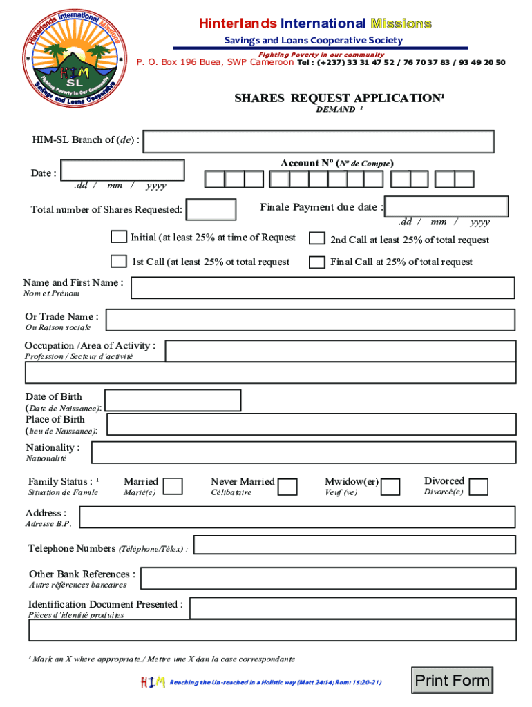 Get the free HIM shares Request form