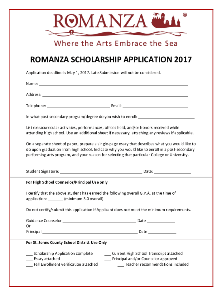 ROMANIA SCHOLARSHIP APPLICATION 2017 Application deadline is May 1, 2017. Late Submission will not be considered. Name: Address: Telephone: Email: In what postsecondary program/degree do you wish