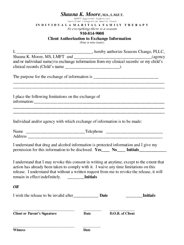 Shauna K. Moore, M.S., L.M.F.T. AA MFT Approved Supervisor Certified Integrative Health Coaching D I V I D U A L M A R I T A L F A M I YTO everything there is a season. T H E R A P Y9108149008 Client