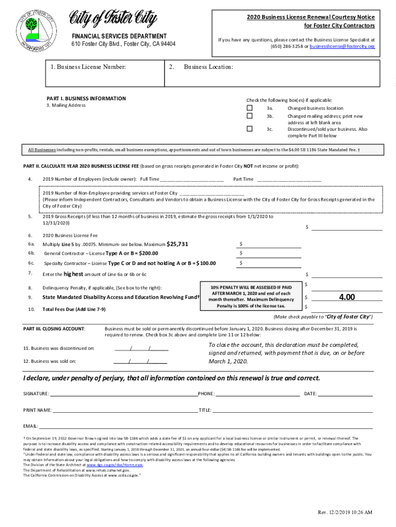 Anyone who wants to conduct business in Foster City needs to fill out the business license application.