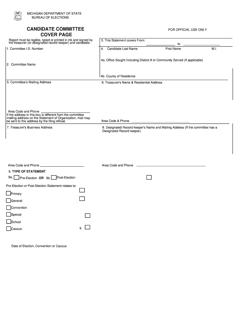 Get the free Michigan Candidate Committee Cover Page