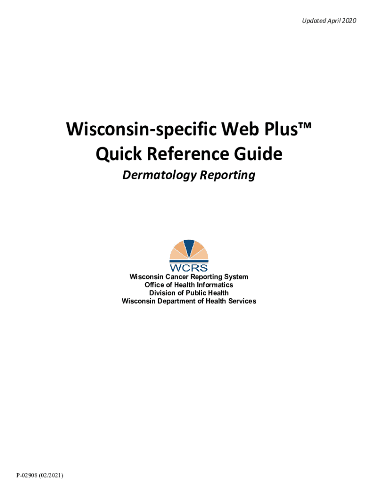 Dermatology Reporting Wisconsin Cancer Reporting System