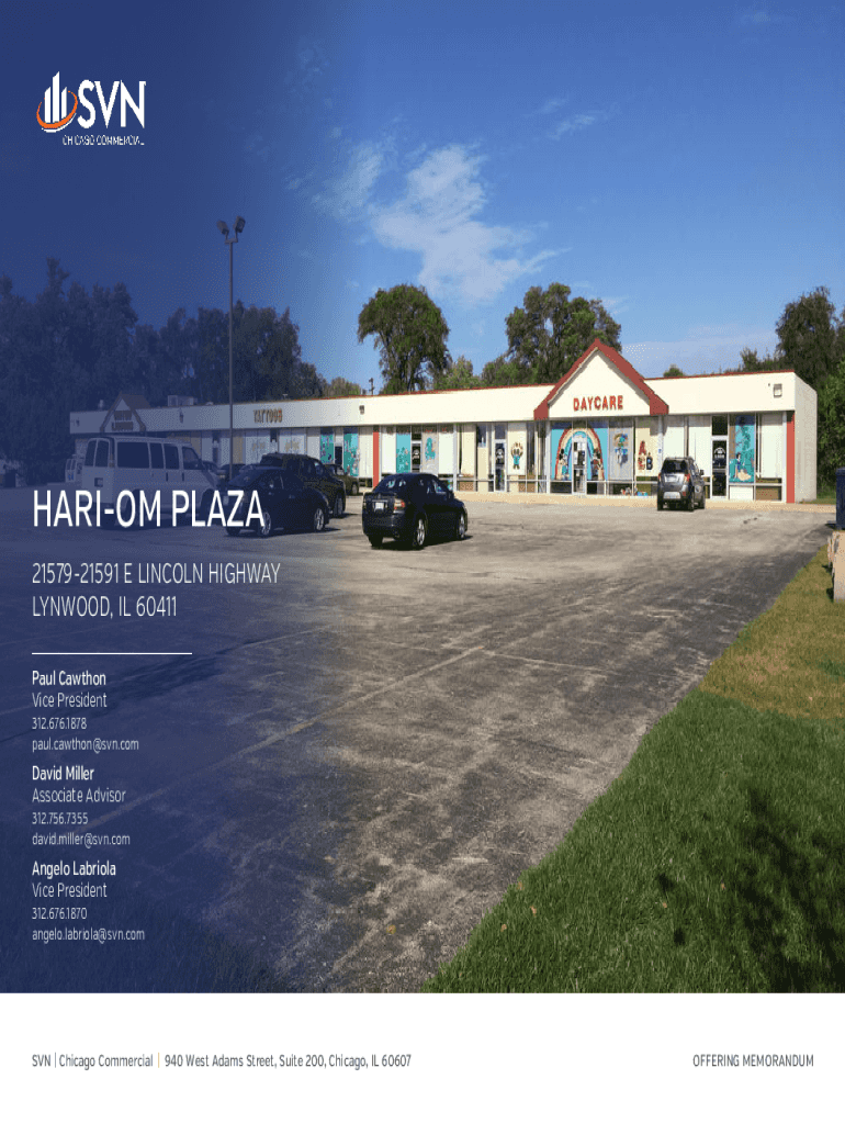 HARBOR PLAZA 2157921591 E LINCOLN HIGHWAY LYNWOOD, IL 60411 Paul Cartoon Vice President 312.676.1878 Paul. Cartoon SVN.com David Miller Associate Advisor 312.756.7355 David. Miller SVN.com Angelo