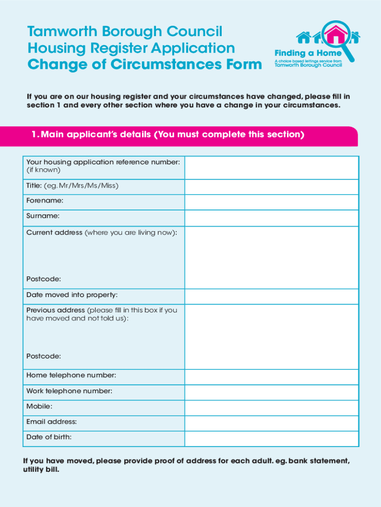 If you are on our housing register and your circumstances have changed, please ll in