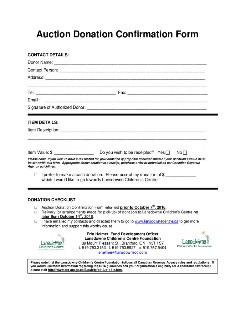 How to fill out auction donation confirmation form