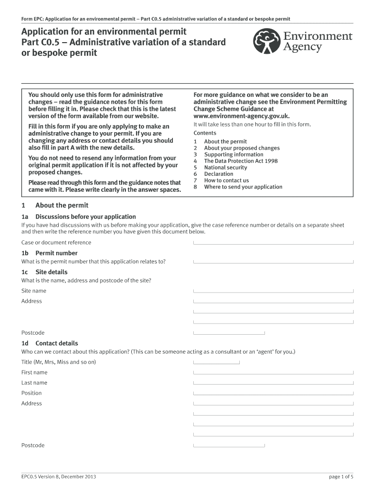 The Environmental Permit Administrative Variation Form, known as the EPC0.5 form, plays a crucial role within UK environmental regulations. This form is specifically utilized to apply for administrative changes to an existing environmental permit, allowing businesses and organizations to amend their permits when necessary. Understanding the significance of this form is essential for maintaining compliance with environmental regulations, ensuring that entities can effectively manage their environmental obligations.