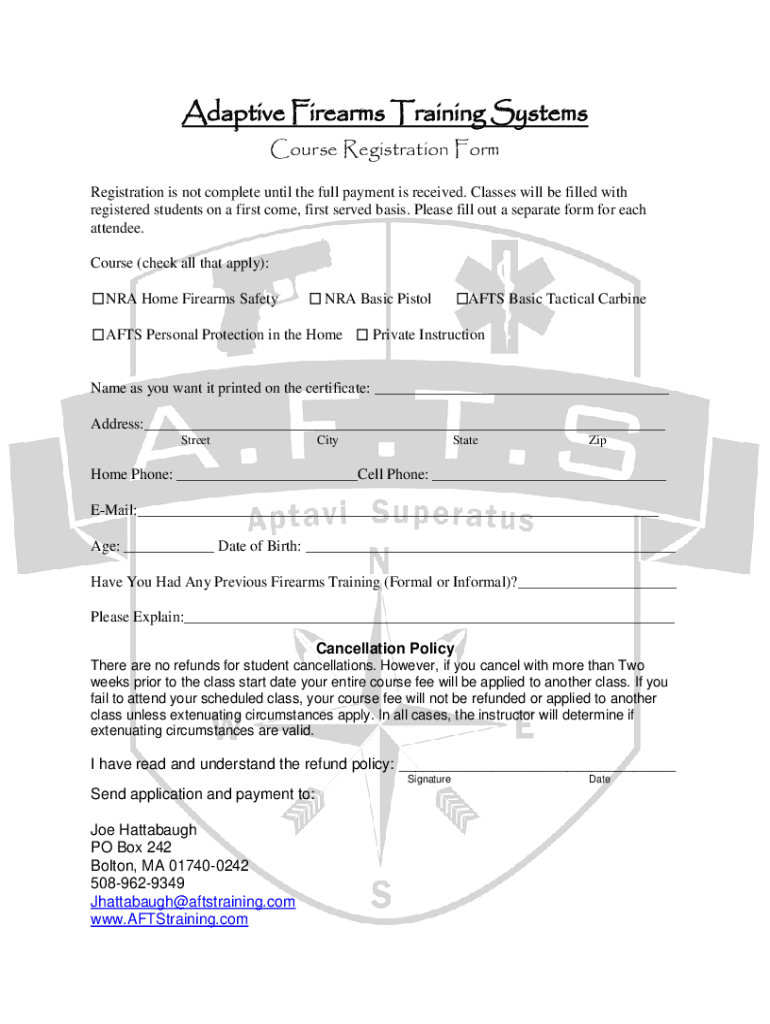 Adaptive Firearms Training Systems Course Registration Form Registration is not complete until the full payment is received. Classes will be filled with registered students on a first come, first