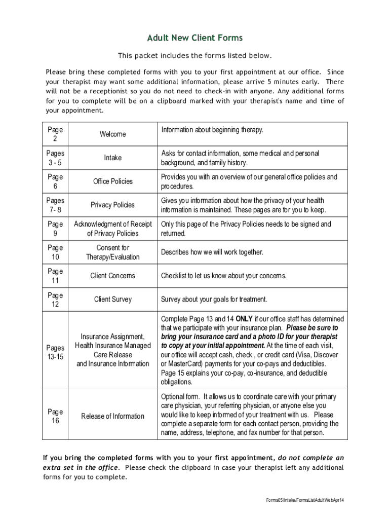 Adult New Client Forms
