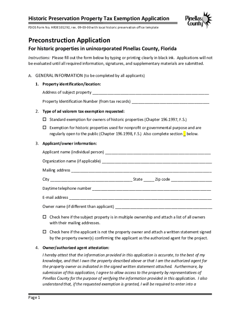DOS Form No. HR3E101292, rev. 090300 with local historic preservation office templatePreconstruction Application