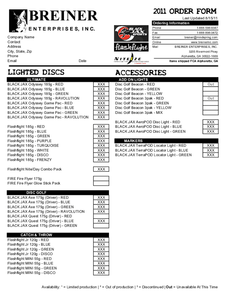 2011 ORDER FORM Last Updated 8/15/11 Ordering Information Phone18885969347FaxCompany Name Contact Address City, State, Zip Phone Email18888963472Emailbreiner mind spring.comOnlinewww.bearing.comMailBREINER