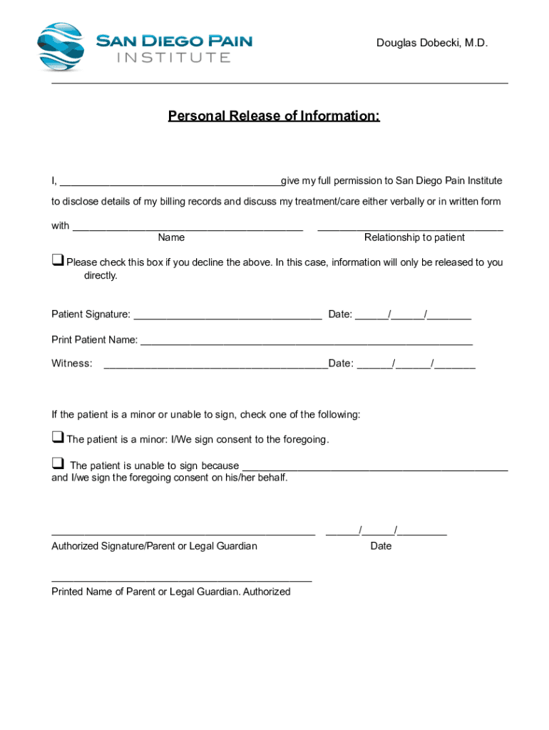 Get the free personal health information release - San Diego Pain Institute