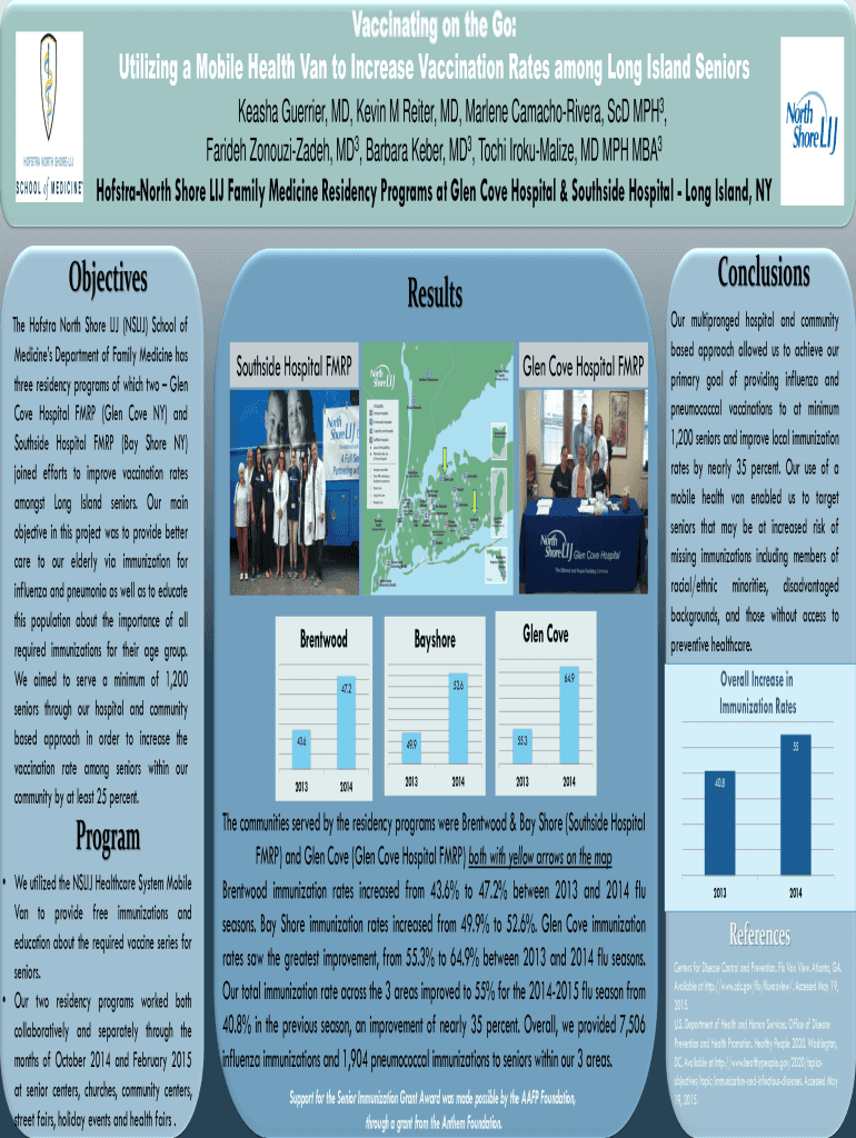 Vaccinating on the Go: Utilizing a Mobile Health Van to Increase Vaccination Rates among Long Island Seniors Keisha Guerrero, MD, Kevin M Rater, MD, Marlene Camacho Rivera, SCD MPH3, Farid ZonouziZadeh,