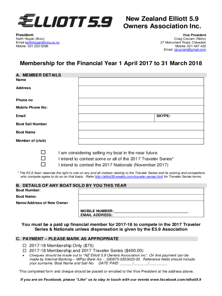 Get the free New Zealand Elliott 5.9 Assn. 2012-13 Membership Form