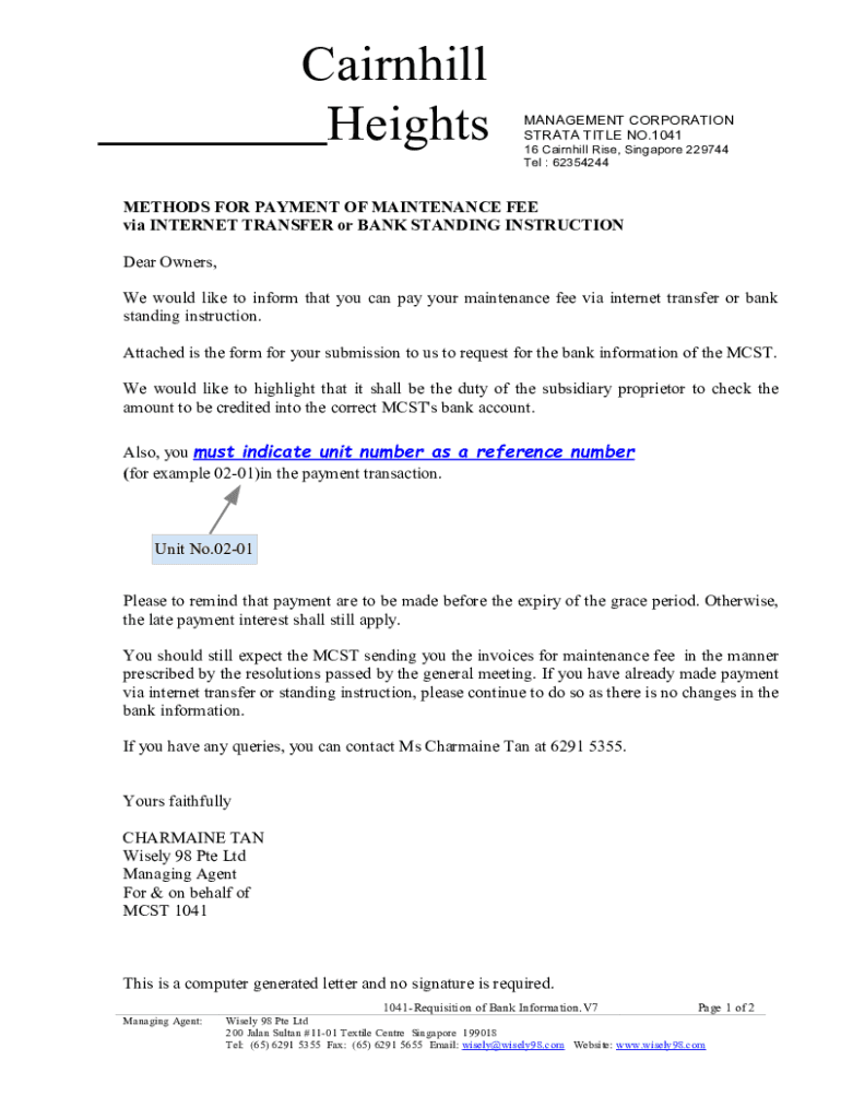 Tel : 62354244METHODS FOR PAYMENT OF MAINTENANCE FEE