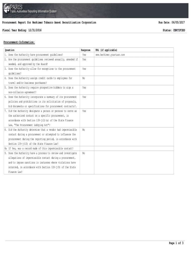 Procurement Report for Perkier Tobacco Asset Securitization Corporation