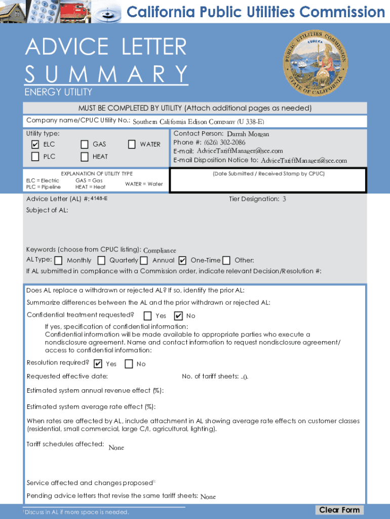 Get the free 0000004285.00000 Advice 4285-E: Southern California Edison ...