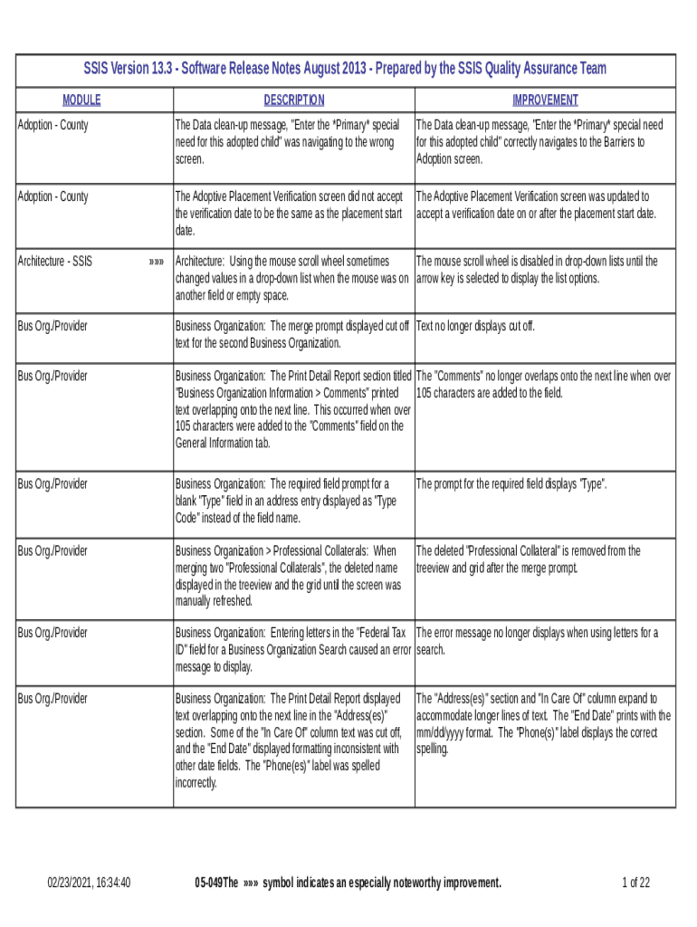 SKIS Version 13.3 Software Release Notes August 2013 Prepared by the SKIS Quality Assurance Team MODULEDESCRIPTIONIMPROVEMENTAdoption County Data cleanup message, “Enter the *Primary* special need