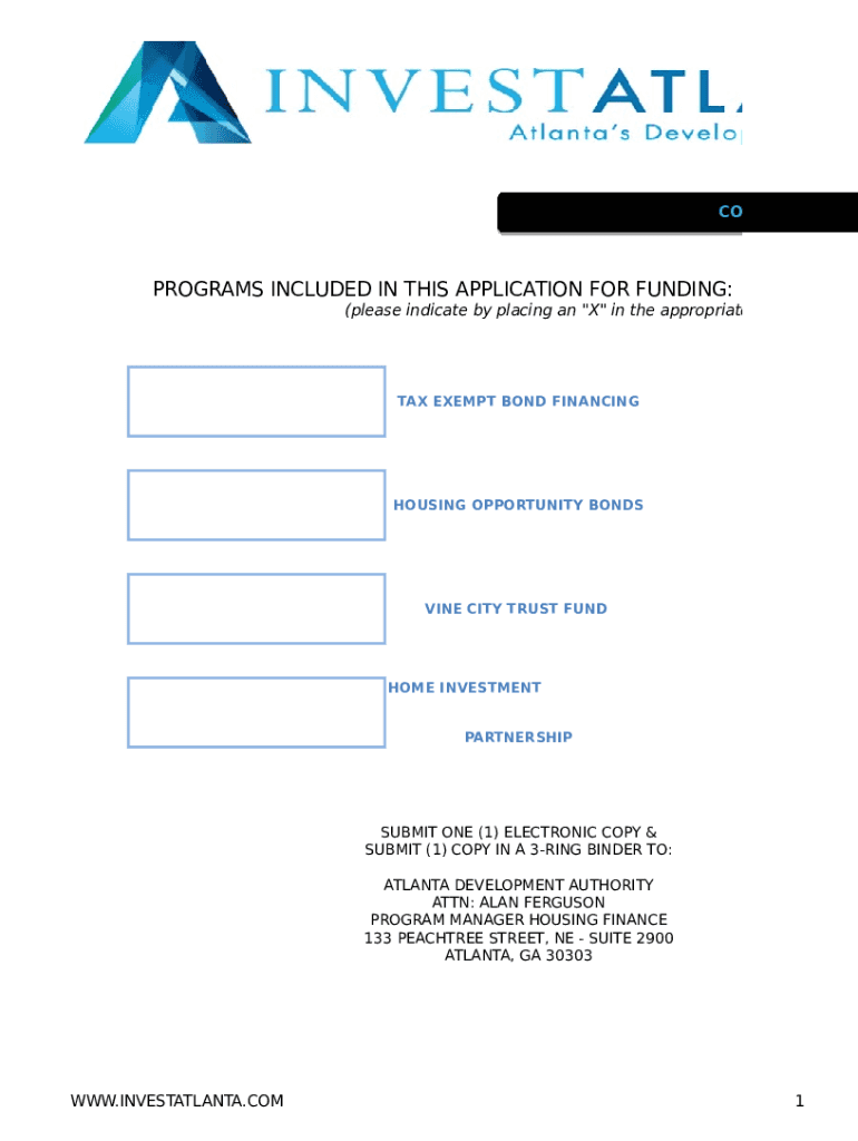 CONCEPT SUBPROGRAMS INCLUDED IN THIS APPLICATION FOR FUNDING: (please indicate by placing an “X in the appropriate funding box)TAX EXEMPT BOND FINANCINGHOUSING OPPORTUNITY BONDING CITY TRUST SYNDROME