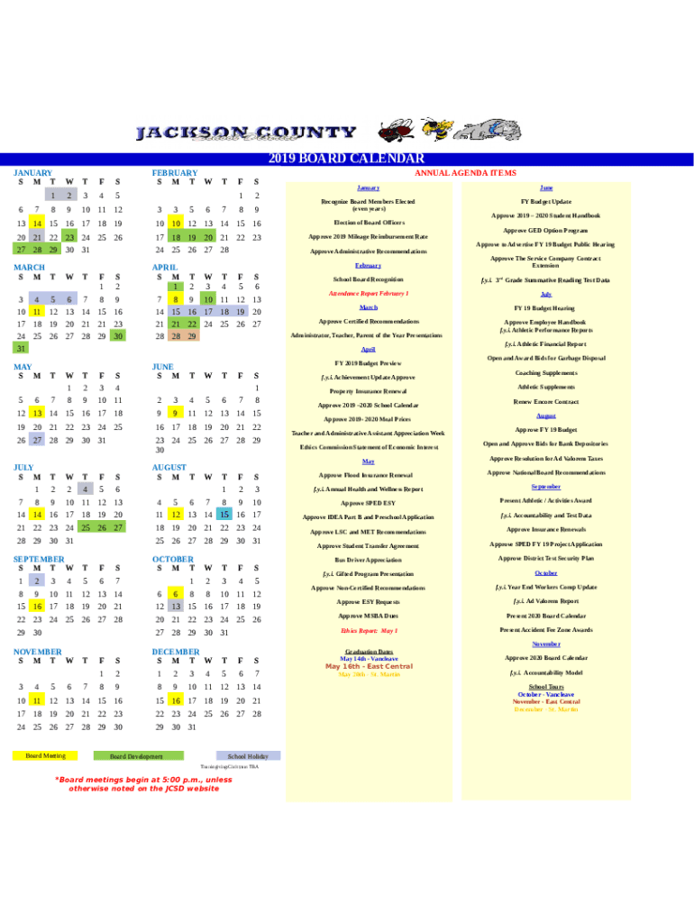 2019 BOARD CALENDAR