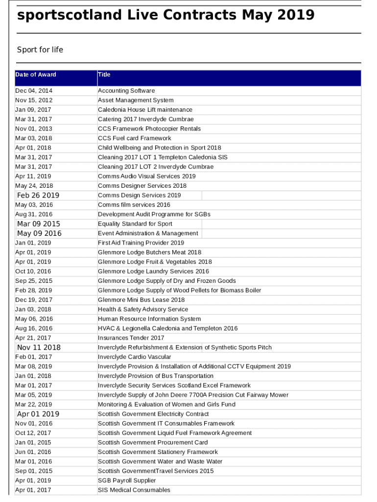 Sportscotland Live Contracts May 2019