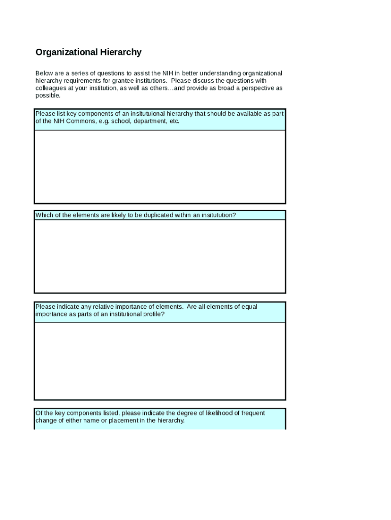 hierarchy requirements for grantee institutions. Please discuss the questions with