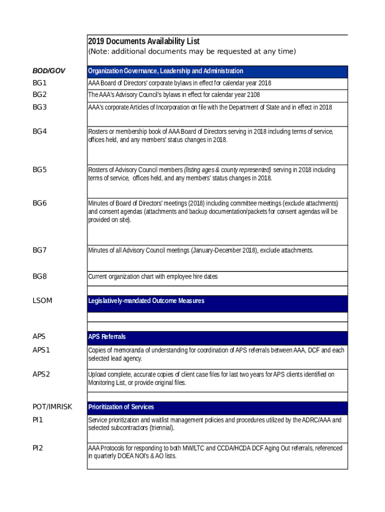 2019 Documents Availability List