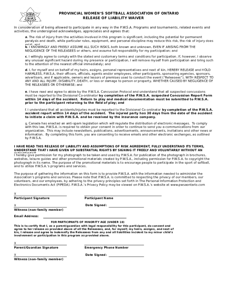 In consideration of being allowed to participate in any way in the P.W.S.A. Programs and tournaments, related events and