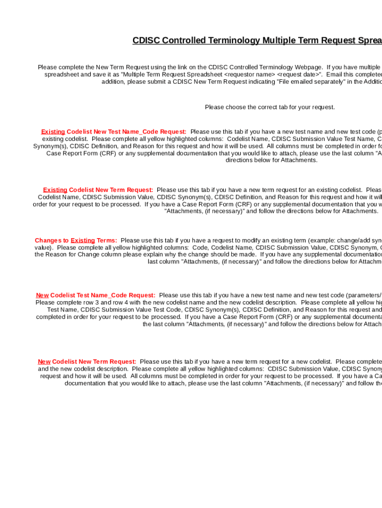 Get the free CDISC Controlled Terminology Multiple Term Request Sprea