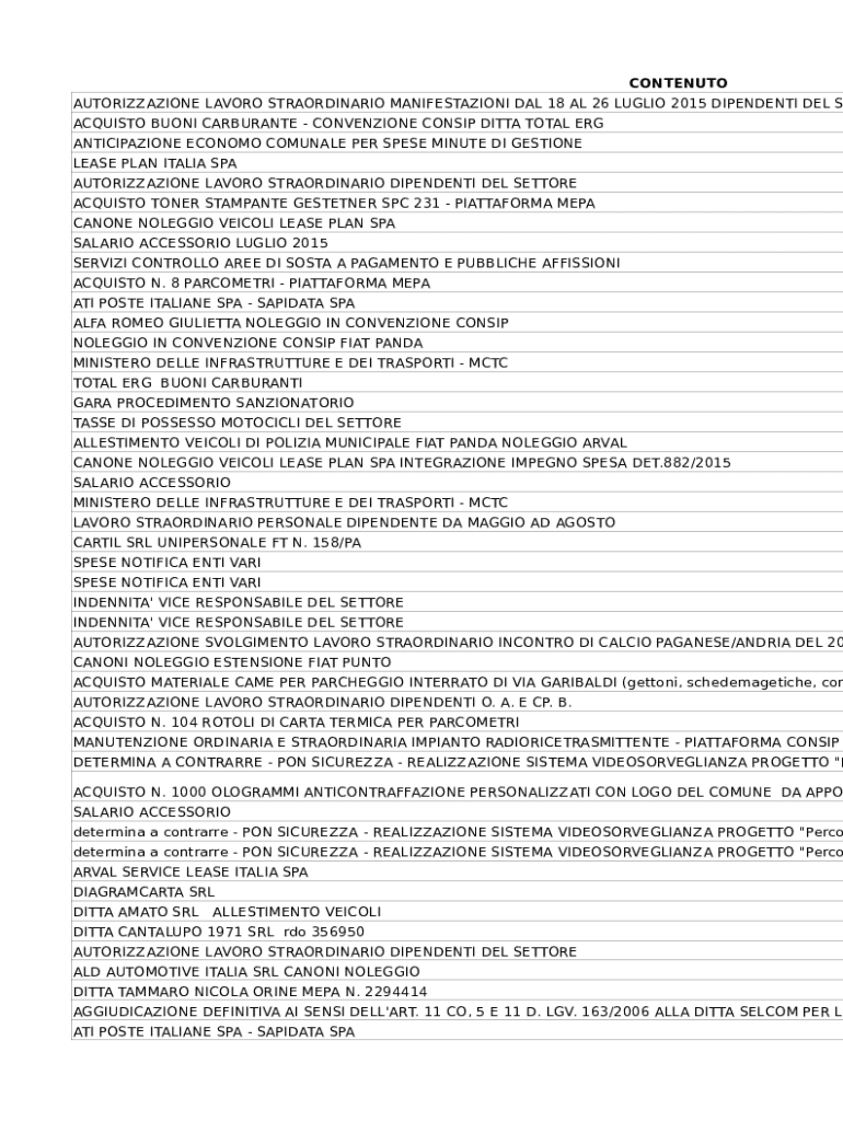 CONTENT AUTORIZZAZIONE FAVOR STRAORDINARIO MANIFESTATION DAL 18 AL 26 JULIO 2015 DEPENDENT DEL S ACQUIT BUO NI CARBONATE CONVENTION COSIP DICTA TOTAL ERG ANTICIPATION ECONOMY COMMUNAL PER SP ESE MINUTE