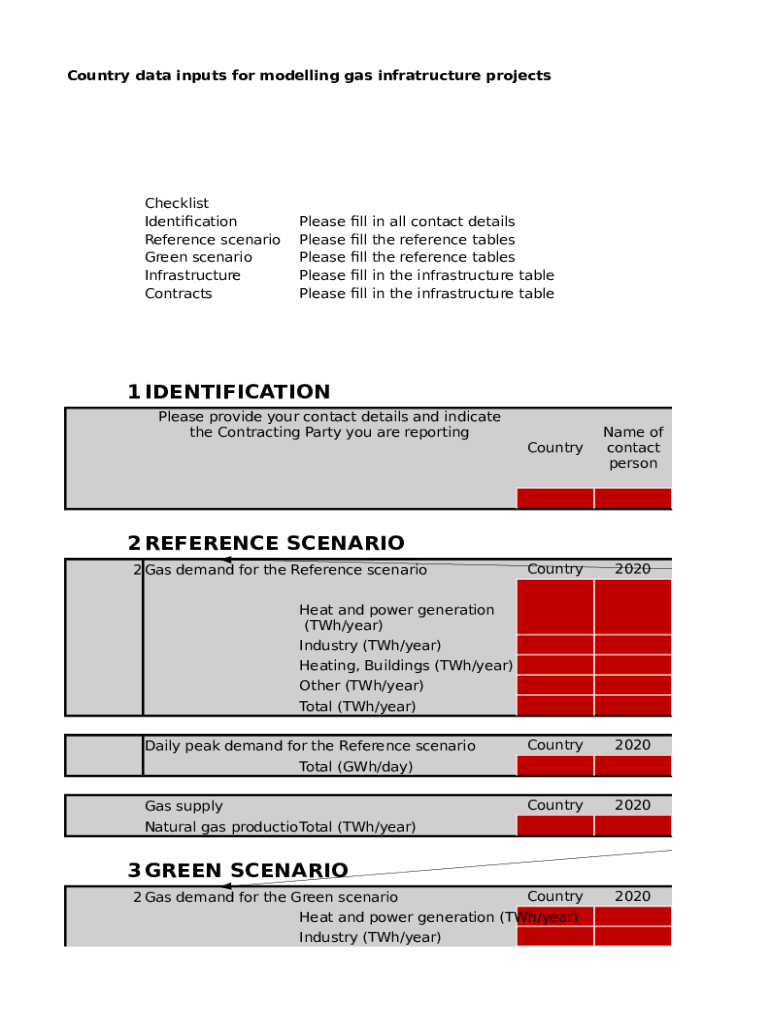 Country data inputs for modelling gas infrastructure projectsChecklist
