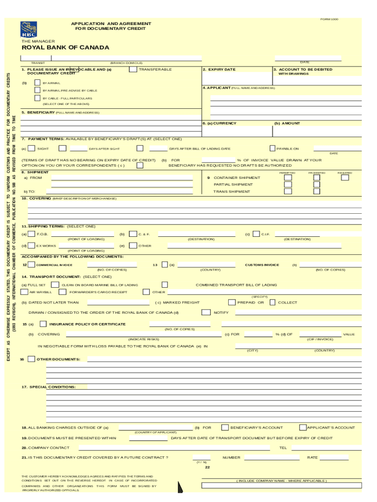 THE MANAGERIAL BANK OF CANADAEXCEPT AS OTHERWISE EXPRESSLY STATED, THIS DOCUMENTARY CREDIT IS SUBJECT TO UNIFORM CUSTOMS AND PRACTICE FOR