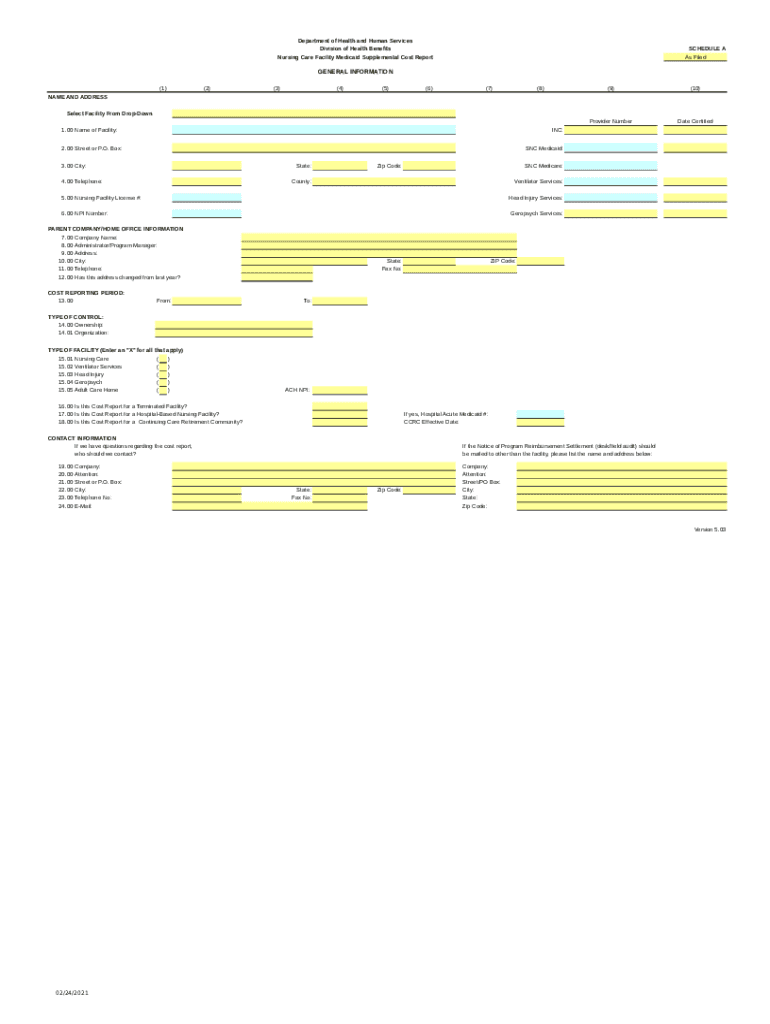 Nursing Care Facility Medicaid Supplemental Cost ReportSCHEDULE A