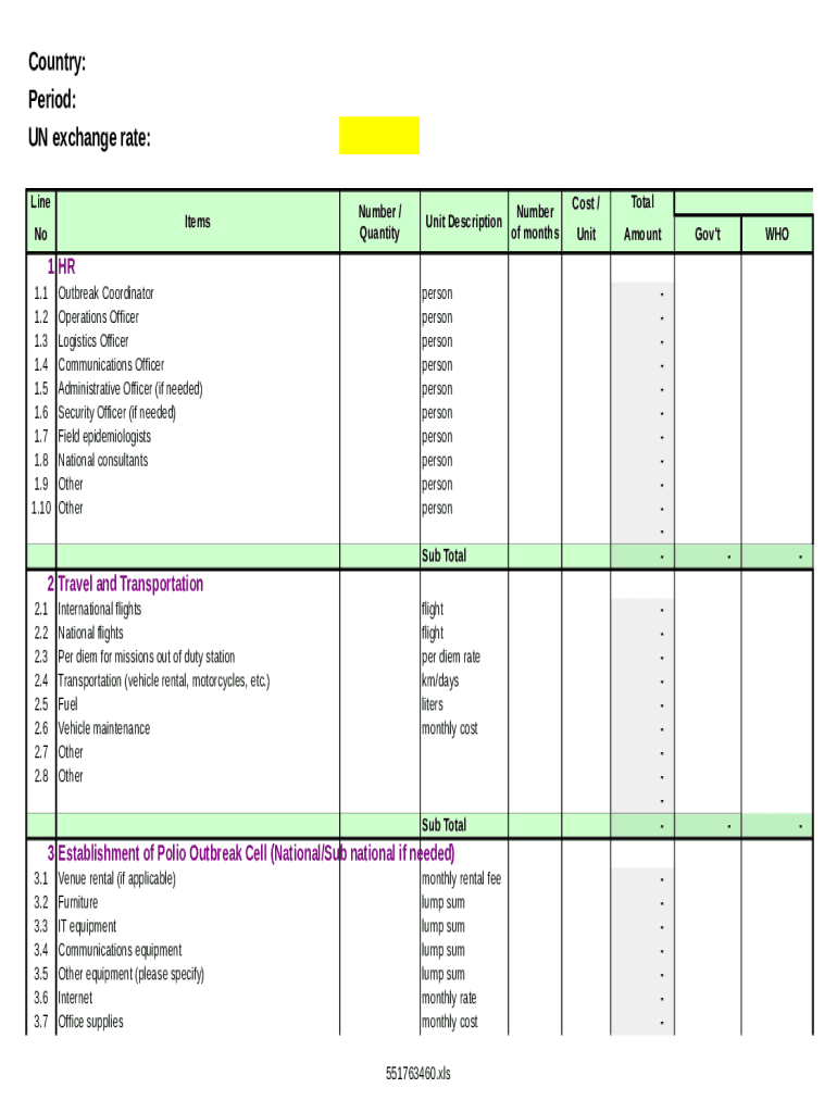 of monthsCost /TotalUnitAmountGov\'tWHO1 HR