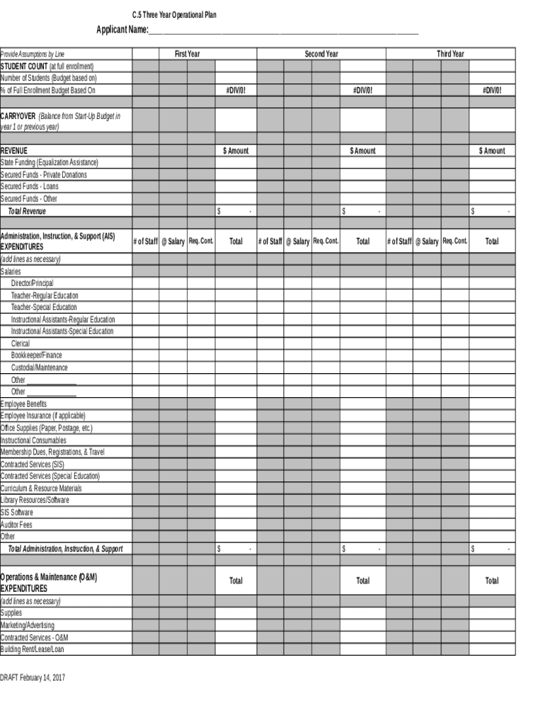 C.5 Three Year Operational PlanApplicant Name: Provide Assumptions by Line.5 Three Year Operational Budget 20182019 Cycle First Year Second YearSTUDENT COUNT (at full enrollment) Number of Students