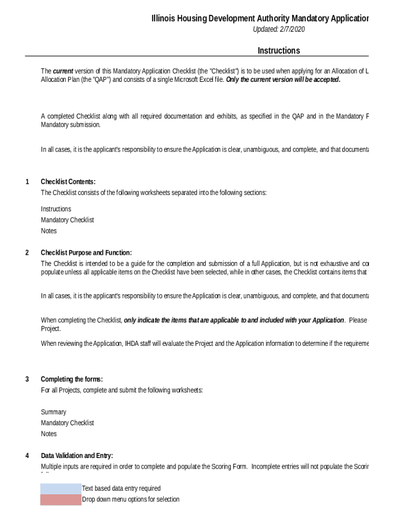 Illinois Housing Development Authority Mandatory Application Check Updated: 2/7/2020InstructionsThe current version of this Mandatory Application Checklist (the “Checklist “) is to be used when