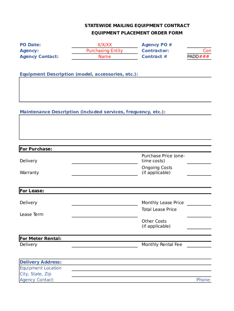 How to fill out equipment placement order form