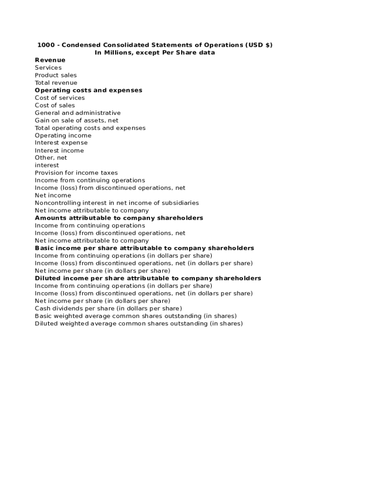 1000 Condensed Consolidated Statements of Operations (USD $) In Millions, except Per Share data Revenue Services Product sales Total revenue Operating costs and expenses Cost of services Cost of sales