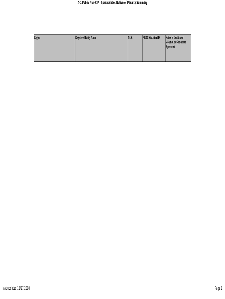A1 Public NonCIP Spreadsheet Notice of Penalty SummaryRegionlast updated 12/27/2018Registered Entity NameNCRNERC Violation Notice of Confirmed Violation or Settlement Agreement Page 1A1 Public NonCIP