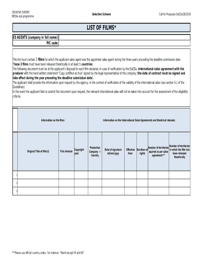 MEDIA subprogrammeSelective Chemical for Proposals EA CEA/28/2018LIST OF FILMS*