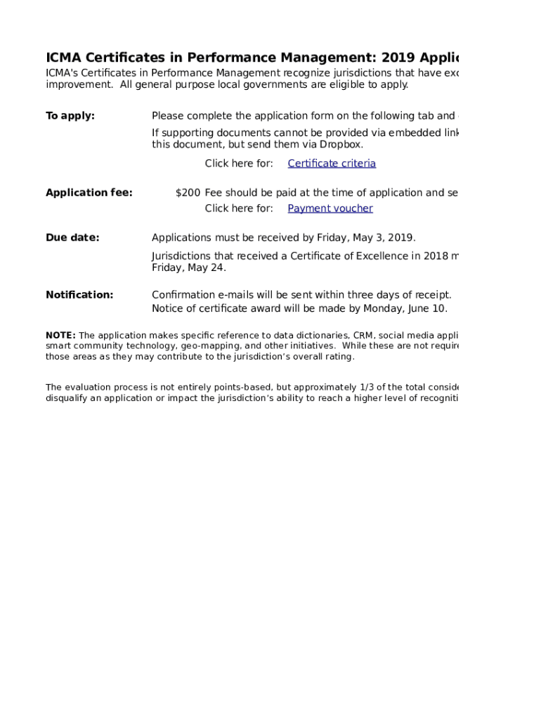 Get the free ICMA Certificates in Performance Management: 2019 Application Form