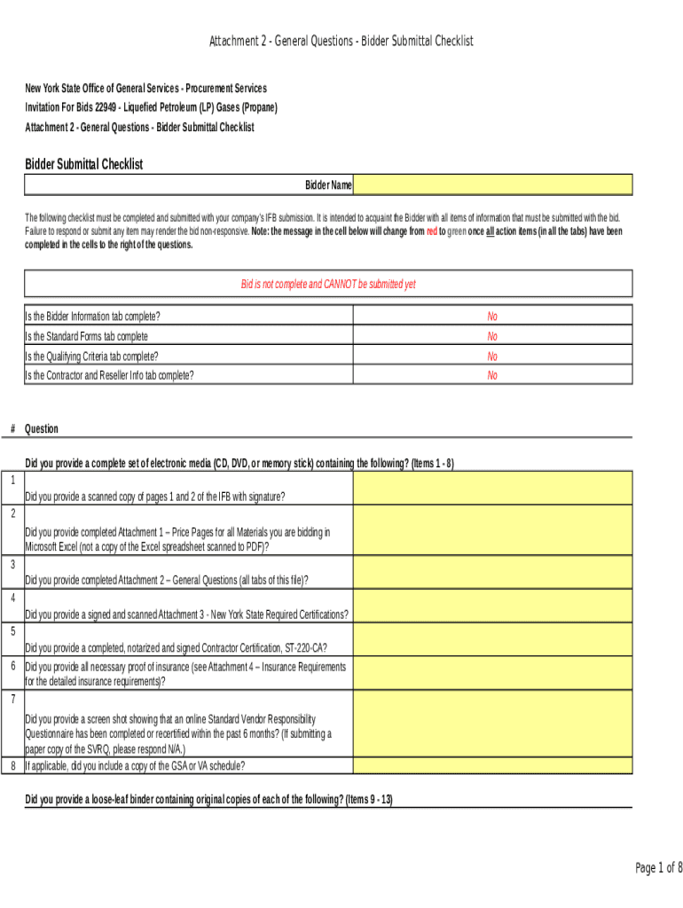 Attachment 2 General Questions Bidder Submittal Checklist New York State Office of General Services Procurement Services Invitation For Bids 22949 Liquefied Petroleum (LP) Gases (Propane) Attachment