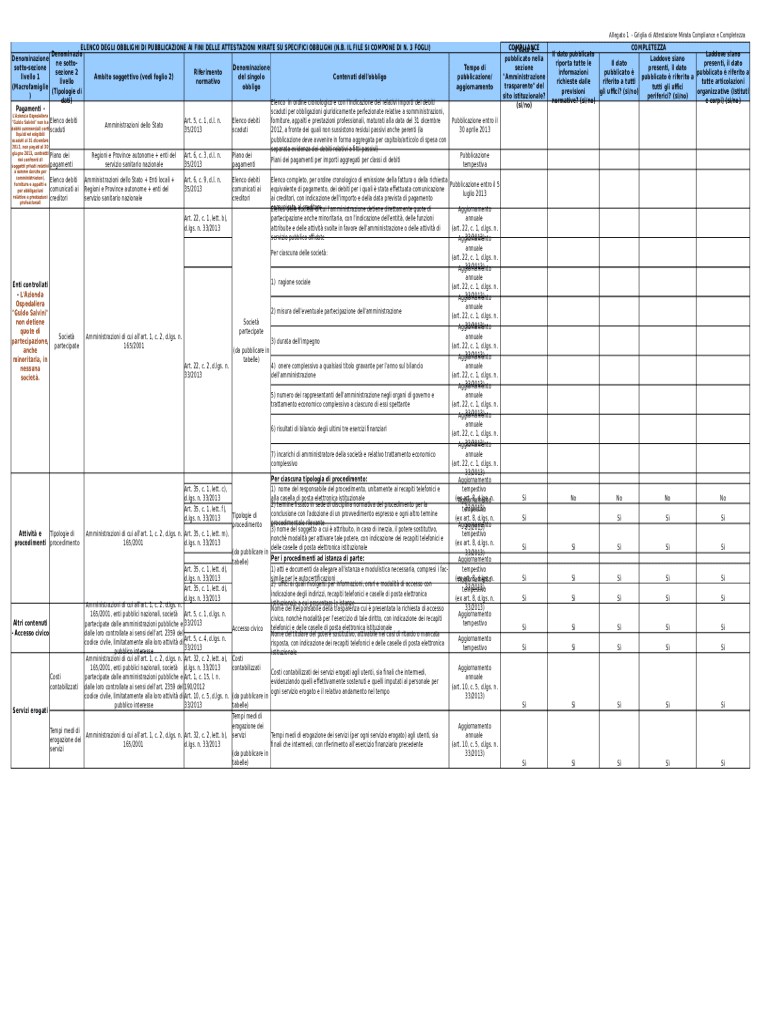 Allegato 1 Ganglia DI Attestation Mira ta Compliance e CompletezzaELENCO DELI OBLIGED DI PUBLICATION AI FINE DELL ATTESTATION MIGRATE SU SPECIFIC OBLIGED (N.B. IL FILE SI COMPOSE DI N. 3 FOG LI) Denomination