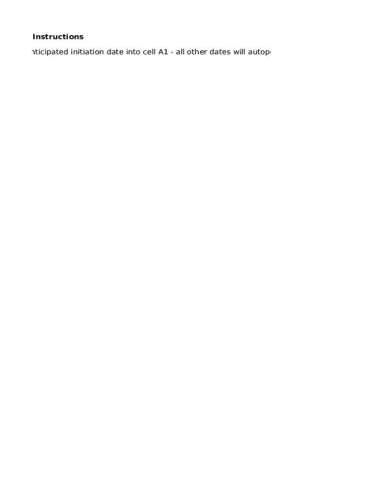 Instructions Insert anticipated initiation date into cell A1 all other dates will autopopulated Recruitment Timeline Template March 22, 2020Insert planned Initiation date into A1 for plan of all Watergate