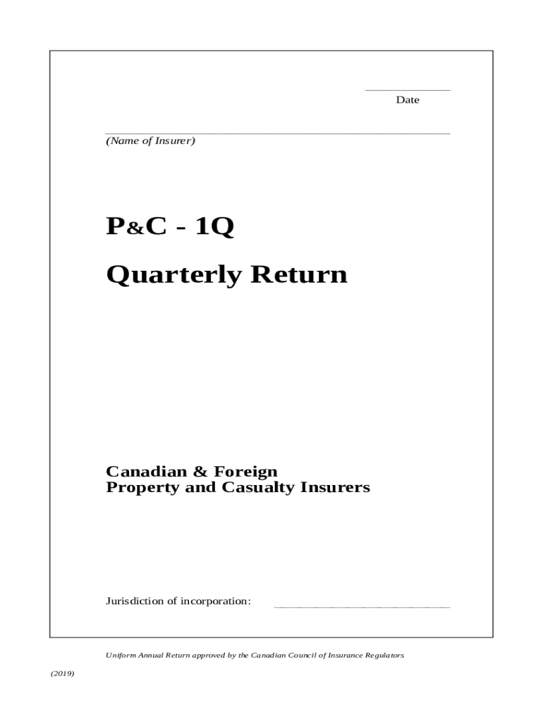 Date(Name of Insurer)P&C 1Q Quarterly Return Canadian & Foreign Property and Casualty InsurersJurisdiction of incorporation:Uniform Annual Return approved by the Canadian Council of Insurance Regulators