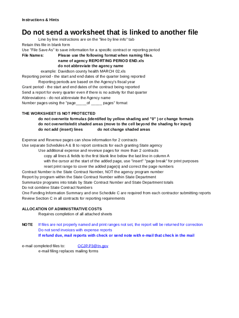Instructions & Hinted not send a worksheet that is linked to another file Line by line instructions are on the “line by line info tab Retain this file in blank form Use “File Save As to save information